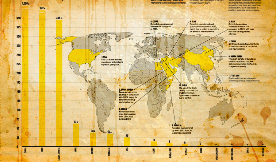 Kansainvälisen oikeuden mukaan kuolemanrangaistuksen käyttö tulee rajata vain kaikista vakavimpien rikosten tekijöille. Silti yli 40 prosenttia vuonna 2024 teloitukseen johtaneista kuolemantuomioista oli langetettu huumausainerikoksista. Viranomaiset teloittivat huumausainerikoksista tuomittuja ainakin Kiinassa, Iranissa, Saudi-Arabiassa ja Singaporessa.