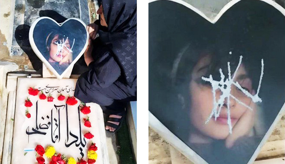 Myös viranomaisten väkivallan vuoksi kuolleen Jina Aminin perhe on kertonut julkisuudessa Jinan haudan toistuvasta tuhoamisesta. Haudasta on tullut monille mielenosoituksissa kuolleiden perheille tärkeä kokoontumispaikka. Viranomaiset suunnittelevat hautausmaalle muutoksia, jotta yleisö ei enää pääsisi käymään hänen haudallaan.
