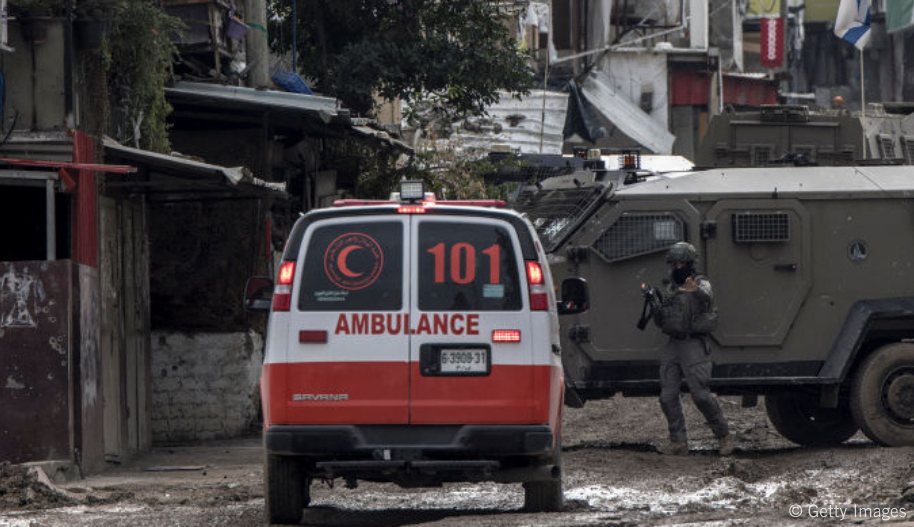 Amnesty International on tutkinut viittä tapausta, joissa Israelin joukot ovat estäneet tai haitanneet mielenosoituksissa ja ratsioissa vakavasti loukkaantuneita saamasta kriittistä terveydenhoitoa. Israelin joukot ovat myös ampuneet palestiinalaisia ja lääkintähenkilökuntaa, jotka yrittivät auttaa loukkaantuneita.