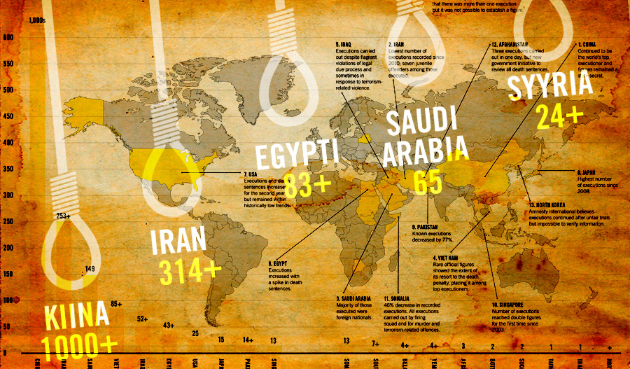 Teloitusten määrä kasvoi erityisesti Saudi-Arabiassa ja Iranissa