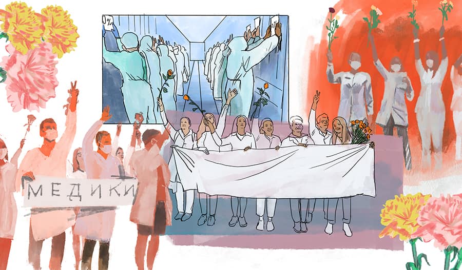 ”Terveydenhuollon tilanne etenkin Valko-Venäjän maaseudulla on katastrofaalinen. Koronapandemian pahimpina aikoina lääkärit työskentelivät taukoamatta. Kiitosten sijaan hallitus uhkailee ja erottaa toisinajattelevia lääkäreitä ja hoitajia,” kertoo nimettömänä pysyttelevä lääkäri.